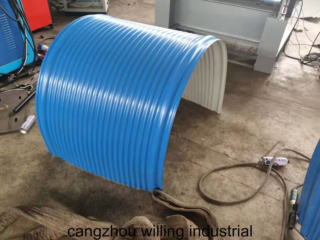 This machine changed the cold pressing method of the previous machine. Use the scroll wheel to change the shape of the roof slab. This production method is suitable for thin and easily damaged panels. Due to its small size, small footprint, and simple operation, this equipment is used by customers to produce roof color steel plates.