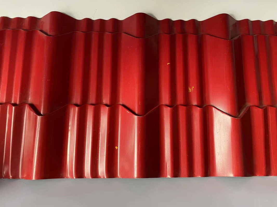 Metal roof tiles with “steps” are rollformed using a rollforming machine from pre-painted steel and Galvanized steel. The Step Tile is formed using pre-painted steel and Galvanized steel.