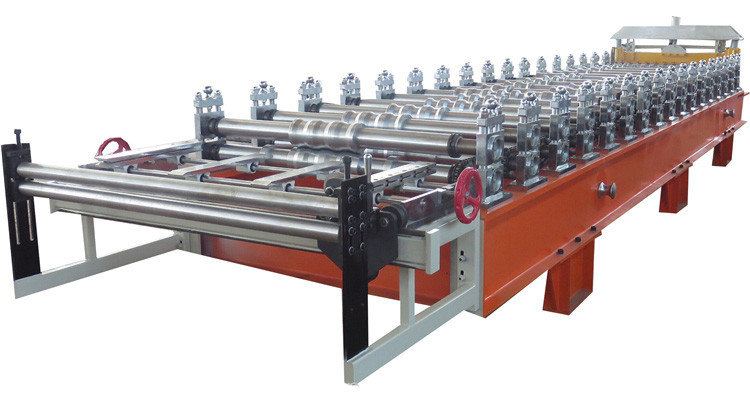 Hydraulic motor roof panel roll forming machine. Power is from hydraulic motor. Hydraulic oil supply the power to roof panel roll forming machine