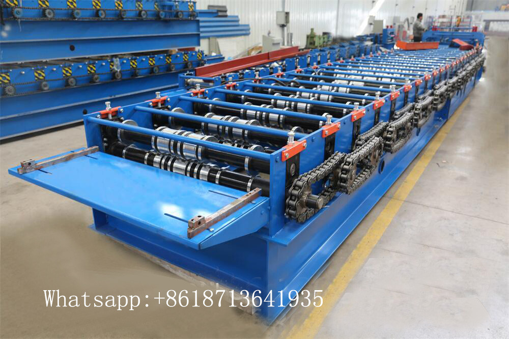 FMS-roofing tile Wall Panel Roll Forming Machine is widely used in the production of IBR Roof, Trapezoidal, Wall Panel and Drywall Stud. This high-precision roll forming machine is driven by a 5.5kw motor and equipped with chrome-plated rollers and 50mm diameter shafts. The galvanized steel material transmission is done via chain. The wall panel roll forming machine is reliable and durable, which can be used in many places such as factories, warehouses, garages, villas, etc. It is also suitable for producing corrugated roof sheet.