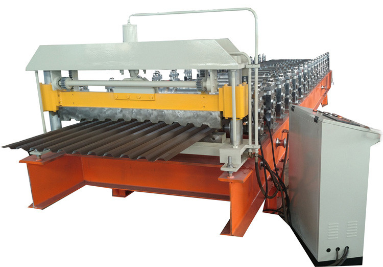 Iron 0.8mm Corrugated Roofing Sheet Roll Forming Machine Hydraulic Cut