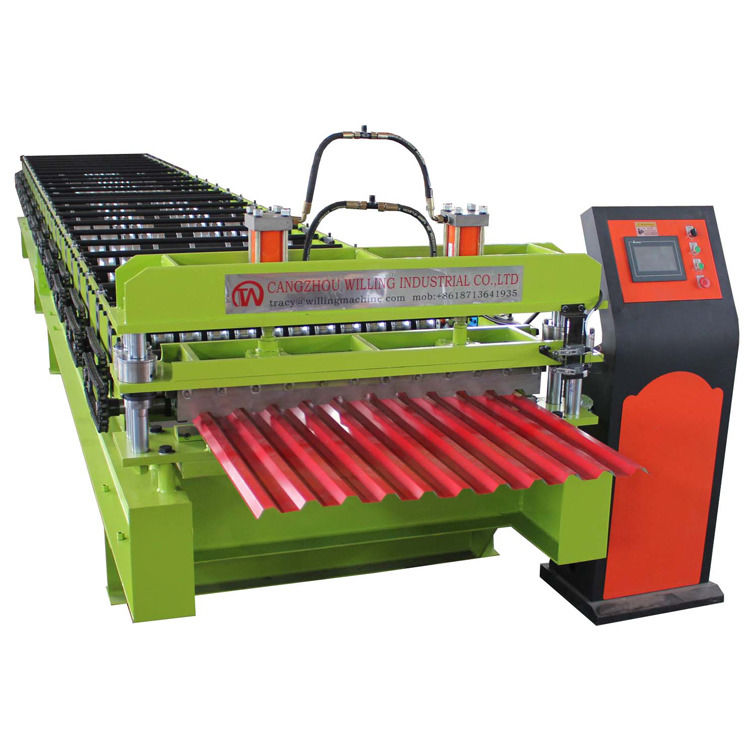 The roof tile roll forming machine is ideal for producing roof metal sheet machine, zinc roofing sheet making machine, and tile roofing sheet making machine. The machine is capable of producing sheets in two different widths, 1000mm and 1250mm, which makes it suitable for different roofing projects. The roller material of the machine is 45# steel, which is hard chrome coated. This ensures the longevity of the machine and prevents wear and tear.