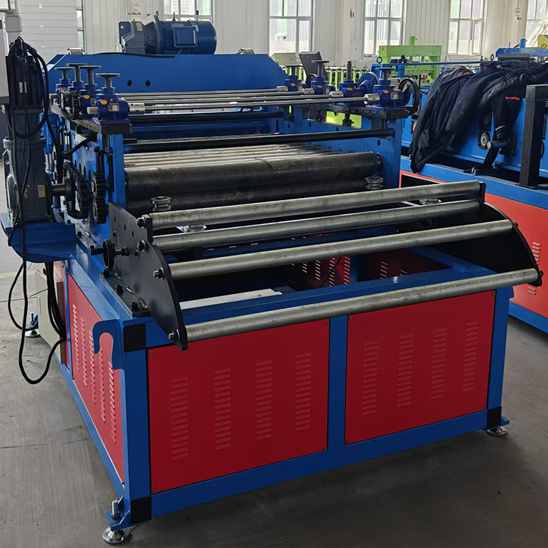 Used to cut the big coils into different width coils. The thickness can be 0.3-3mm GI PPGI, with a working speed that can reach 40 meters per minute. Maximum width of steel coils can be 1250mm.
